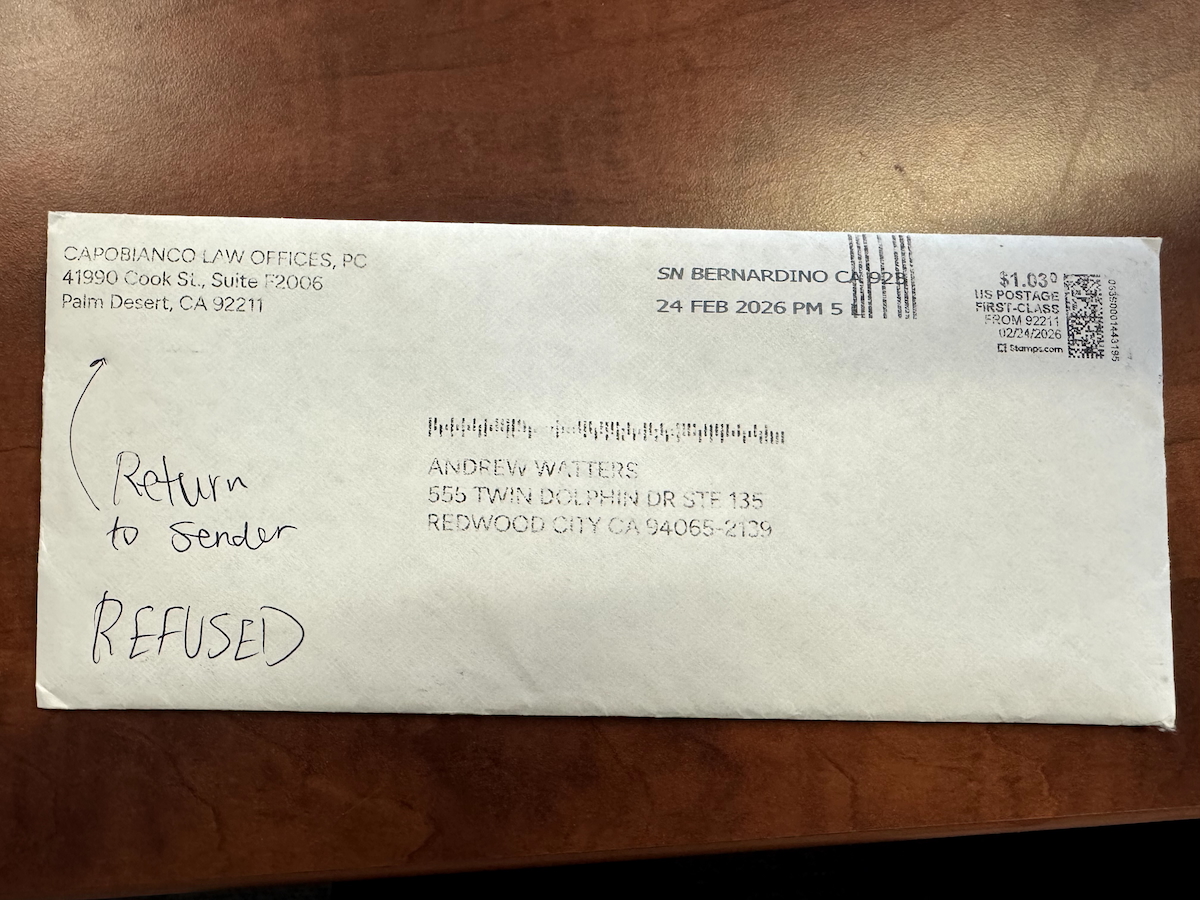 YOUR LATEST DEMAND LETTER OF FEBRUARY 10, 2026 FOLLOWS APPROXIMATELY 18 MONTHS OF EFFORTS AND AT LEAST A DOZEN EMAILS AND LETTERS FROM YOU TO ME AND MY FORMER COLLEAGUE MS. SUSANNA CHENETTE, EACH DEMANDING PAYMENT OF THE DISCOVERY SANCTIONS IN THE UNDERLYING CASE IN AN EVER-INCREASING AMOUNT. THIS MESSAGE IS IN ALL CAPS BECAUSE YOU HAVE DEMONSTRATED THAT YOU ARE DYSFUNCTIONAL IN SOME IMPORTANT MENTAL CAPACITY, AND THAT YOU CANNOT READ, YOU REFUSE TO UNDERSTAND, AND/OR YOU SIMPLY DO NOT GET IT REGARDING MY PRIOR EFFORTS TO DISSUADE YOU FROM THIS ONGOING CRUSADE.
